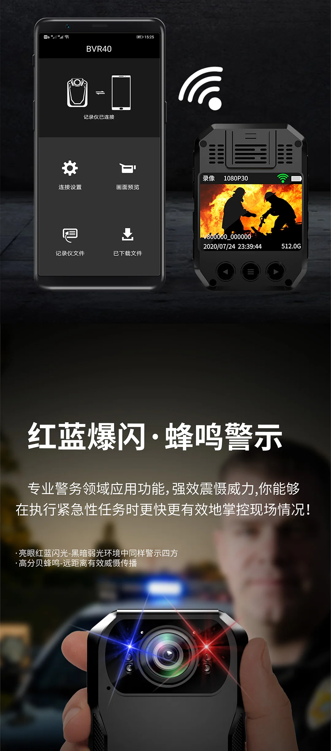 紅藍爆閃,2.5K原畫攝錄,IPX8級防護,一鍵錄像,輕巧便攜