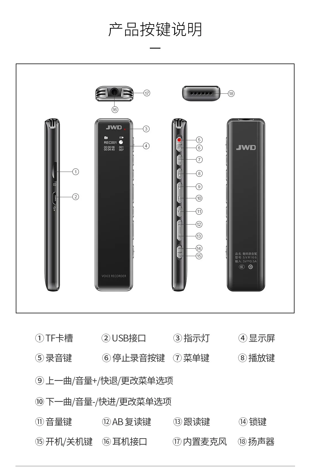2.5D全鏡面顯屏,高品質(zhì)麥克風(fēng),支持TF卡取換,人性化按鍵設(shè)計,智能數(shù)字降噪