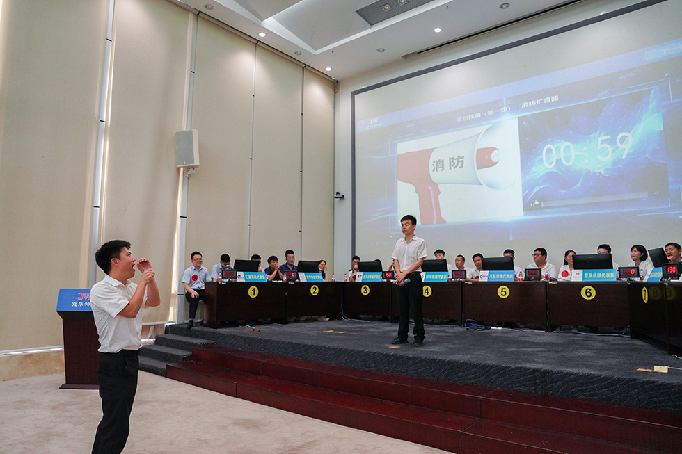 各參賽隊(duì)伍沉著應(yīng)戰(zhàn),在必答題環(huán)節(jié)穩(wěn)定發(fā)揮,在實(shí)操環(huán)節(jié)精準(zhǔn)演示,在風(fēng)險(xiǎn)題環(huán)節(jié)迎難而上,對(duì)答如流的情景贏得陣陣喝彩。穿插在競(jìng)賽中的觀眾互動(dòng)環(huán)節(jié)調(diào)節(jié)了氣氛,增加了觀眾的參與感,于潛移默化中普及消防知識(shí)。
