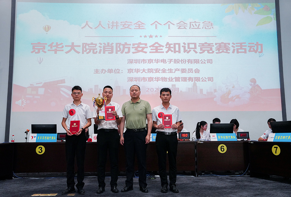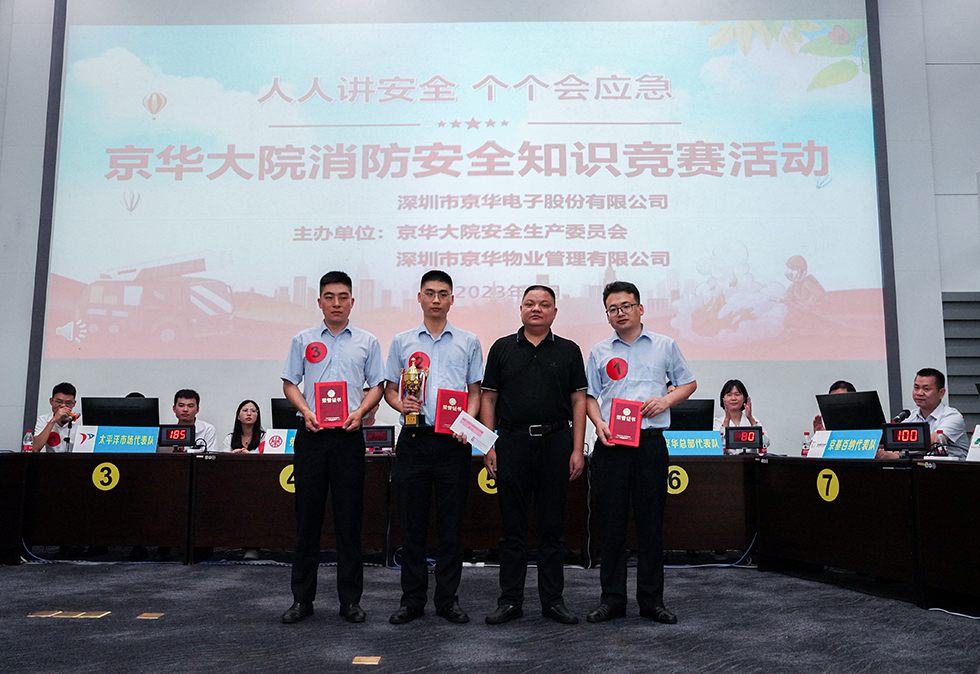 為進(jìn)一步掌握安全生產(chǎn)常識(shí),增強(qiáng)消防安全意識(shí),提高消防安全防范能力,認(rèn)真貫徹落實(shí)2023年“安全生產(chǎn)月”活動(dòng),6月21日下午,京華公司、京華大院安全生產(chǎn)委員會(huì),京華物業(yè)公司聯(lián)合舉辦消防安全知識(shí)競(jìng)賽活動(dòng)。京華公司黨委書(shū)記、總經(jīng)理王國(guó)慶,京華公司副總經(jīng)理、京華物業(yè)總經(jīng)理滕立軍,安全生產(chǎn)辦公室成員和京華大院各參賽隊(duì)伍及其領(lǐng)導(dǎo)出席了本次活動(dòng)。活動(dòng)特邀評(píng)委深圳市福田區(qū)安委辦副主任、應(yīng)急管理局副局長(zhǎng)張志云,華強(qiáng)北街道應(yīng)急辦副主任唐根華,華強(qiáng)北派出所副所長(zhǎng)李斌,華強(qiáng)北派出所福強(qiáng)警區(qū)警長(zhǎng)曾凱蒞臨現(xiàn)場(chǎng)指導(dǎo)。