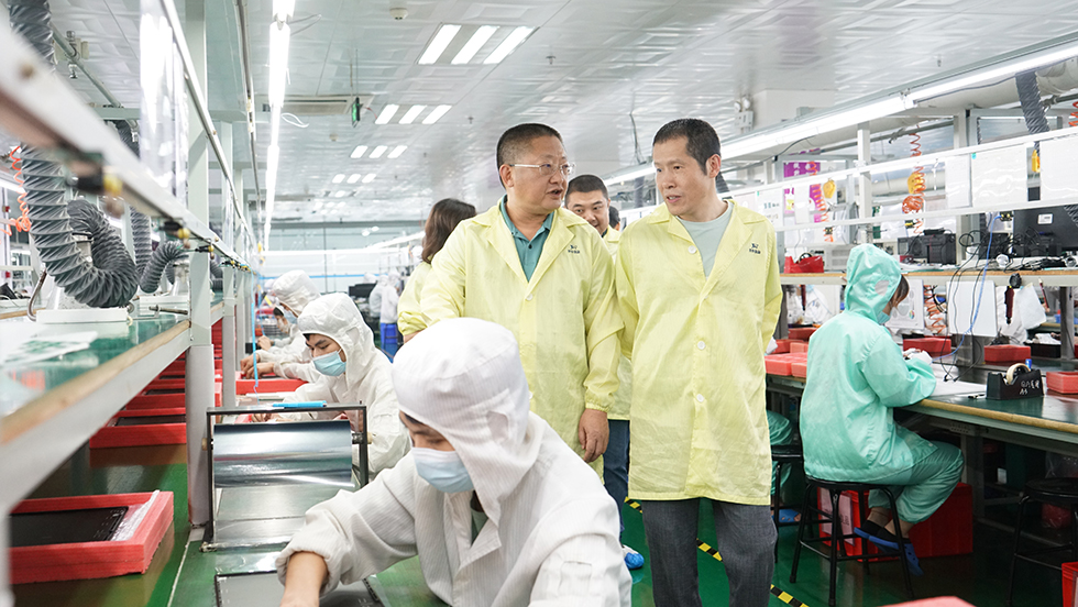 會后,王國慶一行參觀了京華信息公司生產(chǎn)車間,現(xiàn)場調(diào)研產(chǎn)品開發(fā)、生產(chǎn)流水線作業(yè)情況。